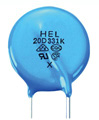 壓敏電阻是半導體元件。當施加在壓敏電阻兩端的電壓從0至U1mA(壓敏電壓)時,流經壓敏電阻的電流≤1mA,壓敏電阻阻值較大,我們可以認為在這一段壓敏是“絕緣體”;當瞬間脈沖高壓入侵時,脈沖電壓峰值超過壓敏電壓,壓敏電阻阻值迅速變小,動作反應時間小于20*10-9秒,壓敏“瞬間”變為“導體”。例如:當壓敏兩端脈沖電壓峰值是壓敏電壓U1mA的2倍時,壓敏的電阻值通常小于1Ω,它完全是導體了。